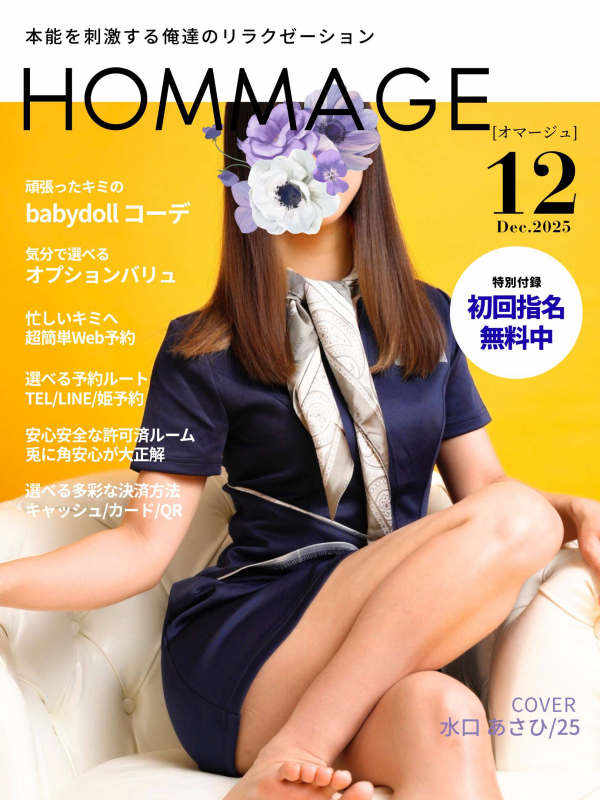 | お店から | 浜松のメンエス・オマージュ店長の山崎です! あさひちゃんの紹介です! 噂のあさひちゃん、まぁ文句の付け所がない容姿端麗ってセラピストです!山崎けっこう視察に回りましたが、これだけのプロポーションをお持ちなセラピストさんは滅多にお目に掛かれません!フランクで優しくってよーーく気の付く性格も相まって!ガチ惚れ警報発令しておきます。いや、ホントなんだって!会ってみたら分かります!貴方もあさひちゃんの虜になってみませんか! あさひちゃん!夜系シフト! 先詰めWEB予約で!至福の時間をゲットしてください! |