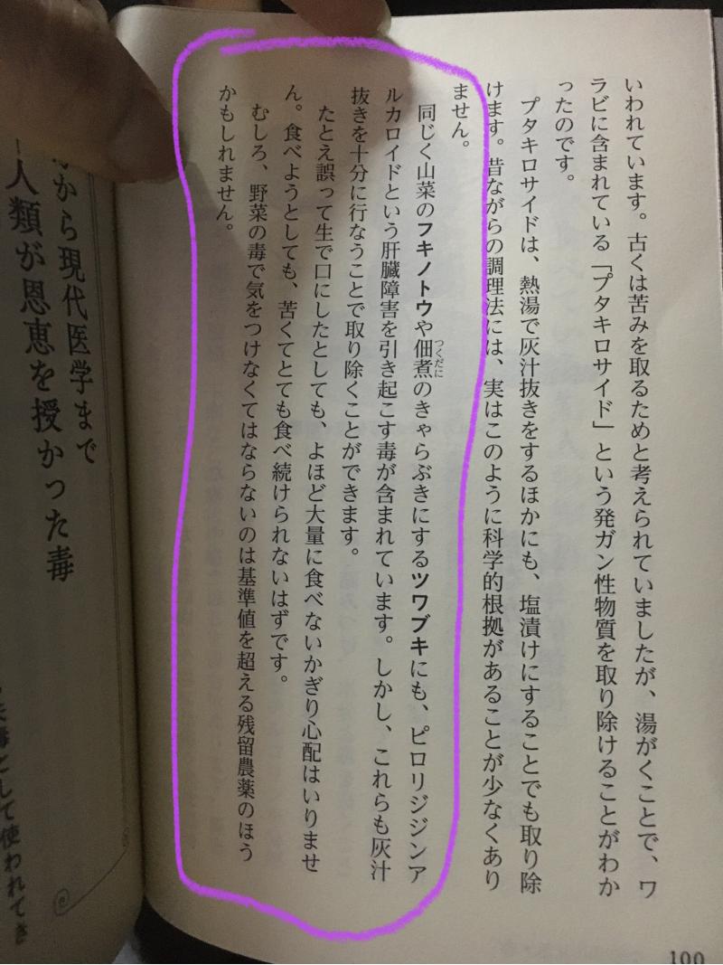 今のんびりと読み進めている毒の本の中にふきのとうが